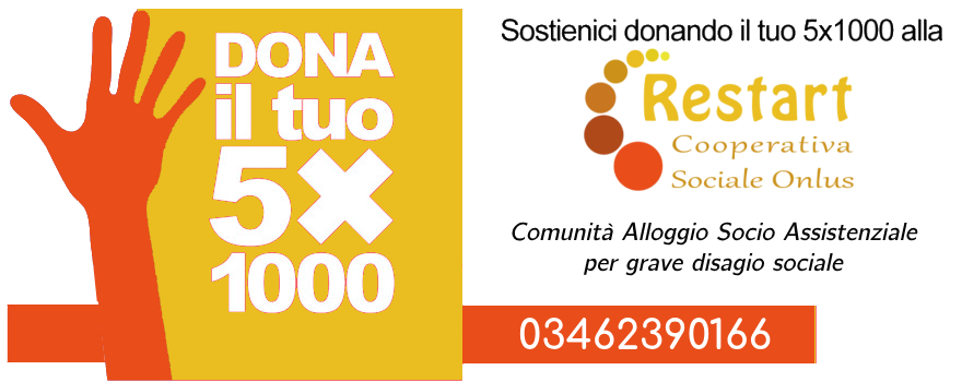 La Cooperativa Sociale Restart - onlus è nata da un gruppo di amici impegnati nel sociale. Si è costituita per dare avvio a un progetto articolato di ospitalità, la Comunità alloggio “Effatà”, rivolto a soggetti adulti in situazione di emarginazione sociale. Nel corso degli anni è emersa sempre più l’esigenza di offrire agli Ospiti, dopo il periodo riabilitativo effettuato presso la Comunità Alloggio, un prosieguo del percorso, con una maggior autonomia e un reinserimento nel tessuto sociale. Dal 2008 è dunque disponibile un Appartamento protetto “L’acero rosso”, che si pone l’obiettivo di garantire un continuum per le persone che hanno raggiunto un consolidato equilibrio psico-fisico.In questi anni di attività abbiamo maturato la consapevolezza della necessità di promuovere atteggiamenti e strategie per lo sviluppo dell’impresa sociale, avendo come obiettivo primario la qualità del servizio erogato e la centralità della Persona.